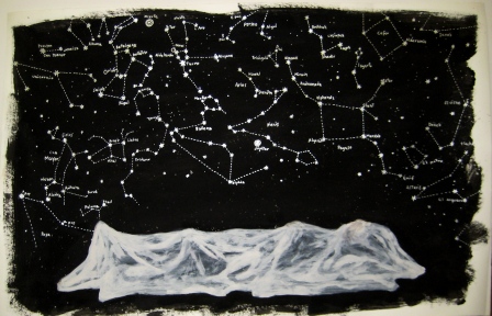 A menudo los paisajes para Pasolini no tiene que ver tanto con el espacio concreto, como con un estado emocional. Los dibujos presentan estas vallas en diferentes situaciones, como si fuesen vestigios de una civilización anterior, en ningún o cualquier lugar. Pero más que contextos sociales concretos, también son estados de compulsión expresiva. Todos esos elementos forman parte de una misma historia de esa lírica de la resistencia, cargados de una gran densidad utópica. También su cuerpo cubierto se convierte en un paisaje desértico pero esta vez temporal ya que el cielo estrellado está representado tal y como se vería en que la noche en que fue asesinado. Ese mismo año Sartre perdió la vista.